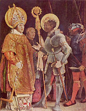 der heilige Erasmus und Mauritius von Mathias Grünewald, 1521 / 1523 Urspr. in Stiftskirche in Halle (Saale), Auftraggeber: Kardinal Albrecht von Brandenburg, Erzbischof von Mainz und Magdeburg dieses Bild befindet sich in der Alten Pinakothek -München
